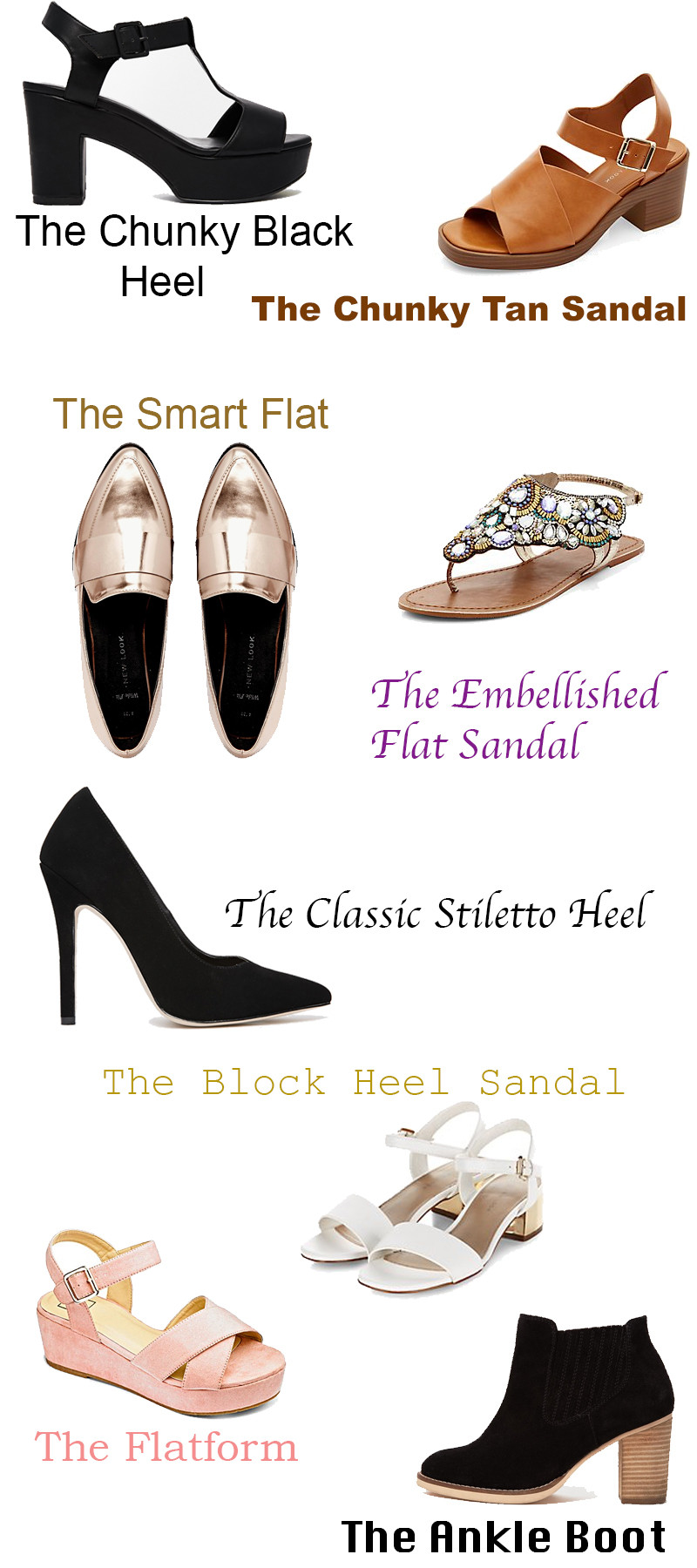 Nowadays with the likes of New Look and ASOS there are an abundance of cute heels and flats available and I have put together 8 styles I think every fashionista should have in their collection. If you like a particular shoe, click on it and it'll take you directly to the correct website.